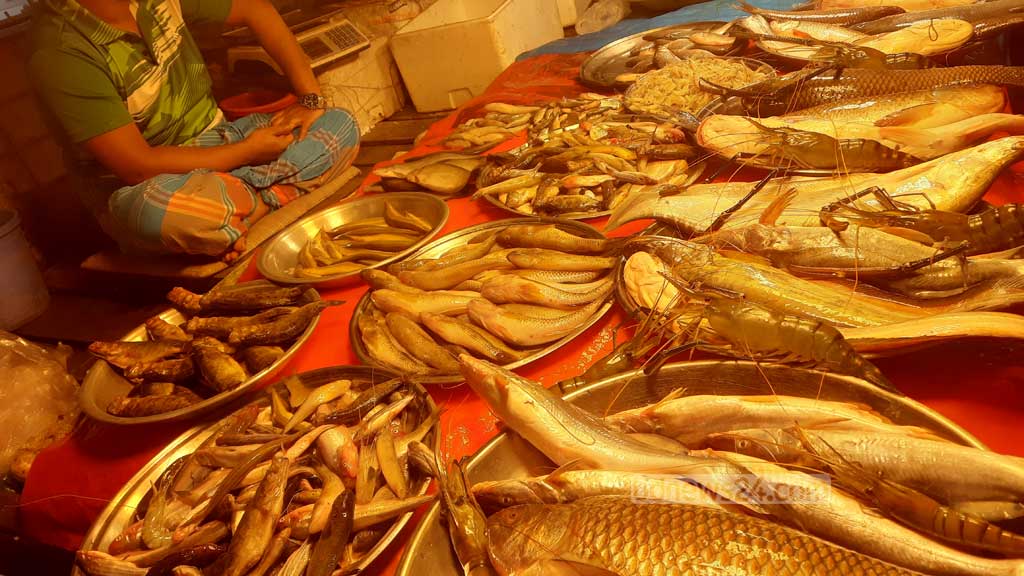 এ বাজারে চাষের পাঙাশ মাছ বিক্রি হচ্ছে ২০০ থেকে ২২০ টাকা কেজি দরে।